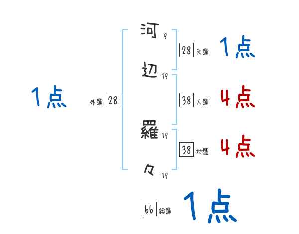 河辺羅々さんの画数の鑑定結果
