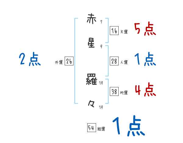 赤星羅々さんの画数の鑑定結果