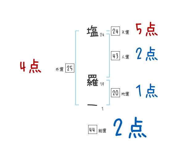 塩羅一さんの画数の鑑定結果