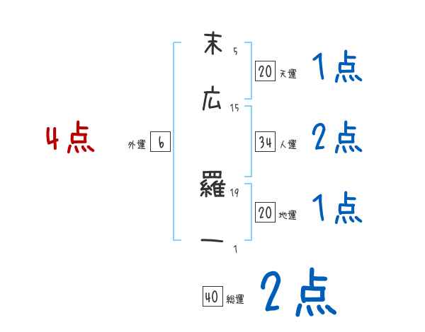 末広羅一さんの画数の鑑定結果