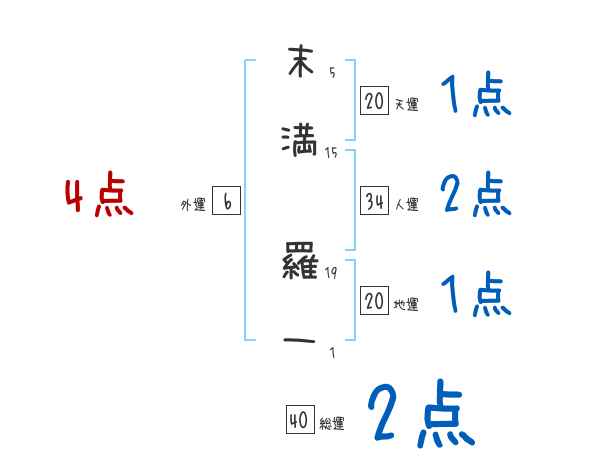 末満羅一さんの画数の鑑定結果