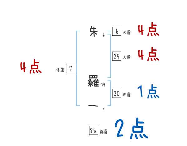 朱羅一さんの画数の鑑定結果