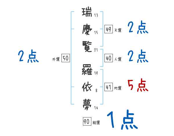 瑞慶覧羅依夢さんの画数の鑑定結果