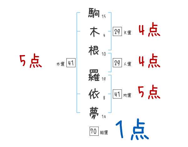 駒木根羅依夢さんの画数の鑑定結果