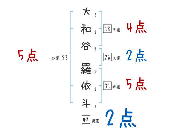 天運![]() | 大和谷羅依斗さんの天運は18画の4つ星!情熱的で剛気。忍耐力があり信頼される。 家系が持つ宿命的な運勢を表します。祖先から受け継いだ苗字ですので自分の力が及びません。家柄を象徴します。 |
