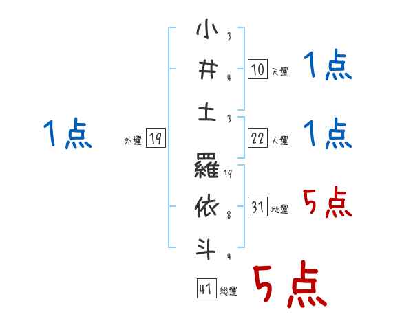 小井土羅依斗さんの画数の鑑定結果