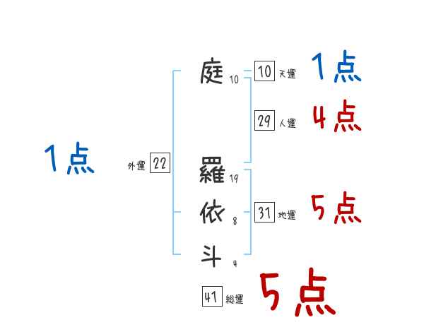 庭羅依斗さんの画数の鑑定結果