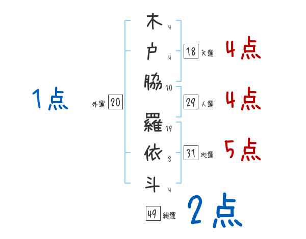 天運![]() | 木戸脇羅依斗さんの天運は18画の4つ星!情熱的で剛気。忍耐力があり信頼される。 家系が持つ宿命的な運勢を表します。祖先から受け継いだ苗字ですので自分の力が及びません。家柄を象徴します。 |