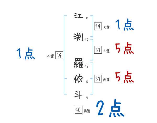外運![]() | 江渕羅依斗さんの外運は19画の1つ星!優れた才能を持ちますが、協調性が足りないことも。周りの人と協力する事を意識しましょう。 生活面を象徴する運勢です。外部から受ける影響力を表し、結婚運、家庭運や職場、環境への順応性を表します。 |