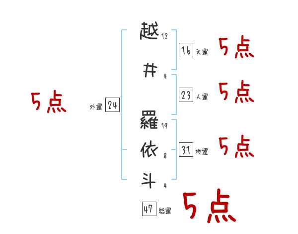 越井羅依斗さんの画数の鑑定結果