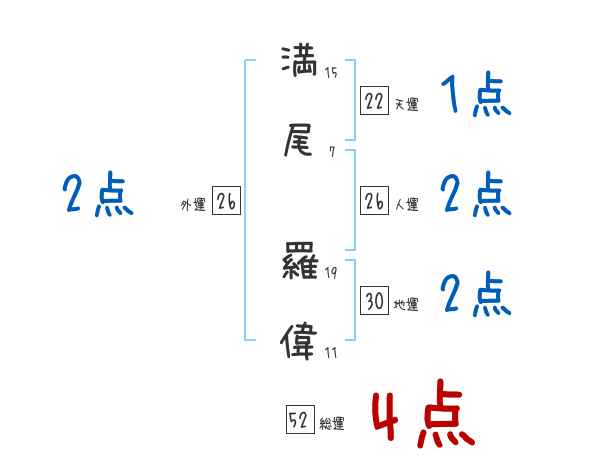 満尾羅偉さんの画数の鑑定結果
