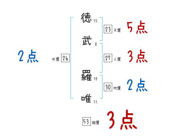 徳武羅唯さんの画数の鑑定結果