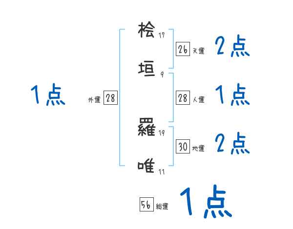 桧垣羅唯さんの画数の鑑定結果