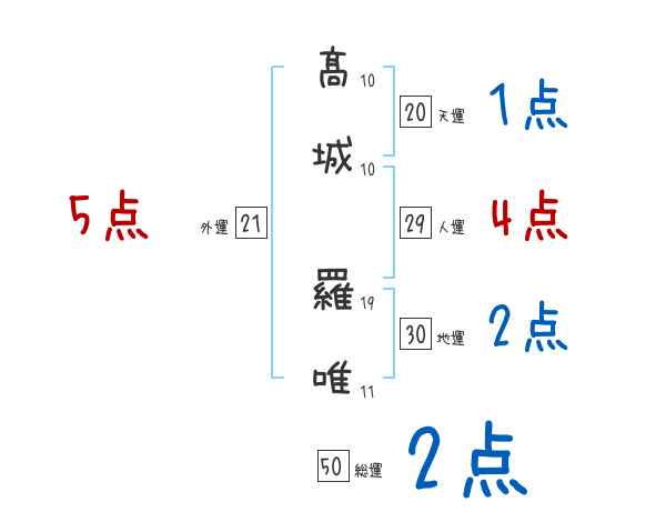 髙城羅唯さんの画数の鑑定結果