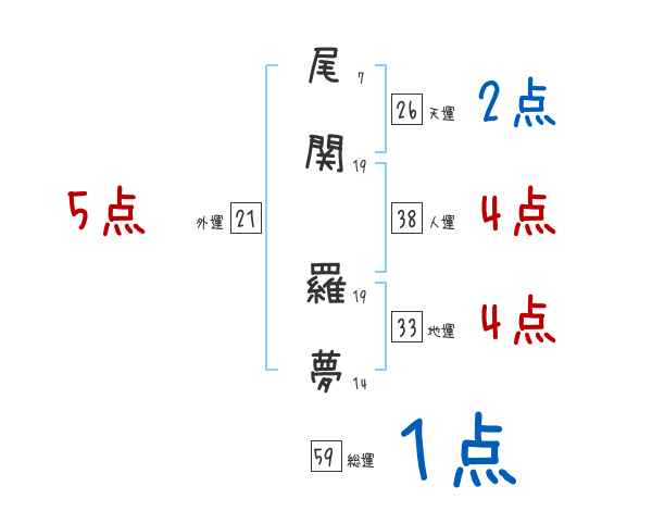 尾関羅夢さんの画数の鑑定結果