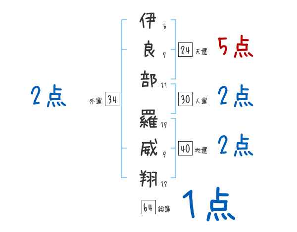 伊良部羅威翔さんの画数の鑑定結果