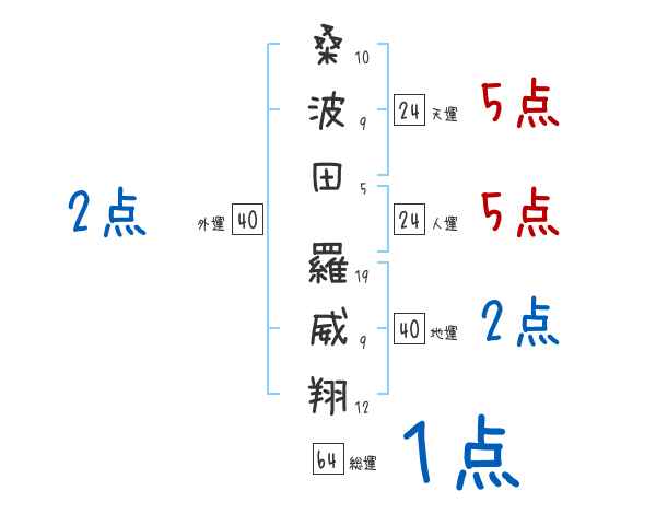 桑波田羅威翔さんの画数の鑑定結果