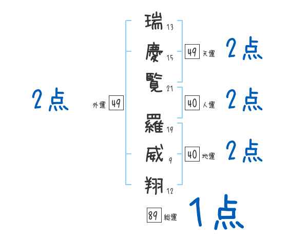 瑞慶覧羅威翔さんの画数の鑑定結果