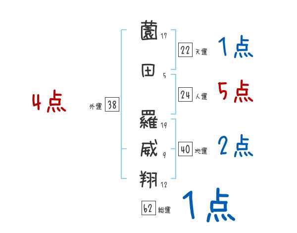 外運![]() | 薗田羅威翔さんの外運は38画の4つ星!温厚な性格で技術的な才能を発揮する。職人的な仕事に向いている。 生活面を象徴する運勢です。外部から受ける影響力を表し、結婚運、家庭運や職場、環境への順応性を表します。 |