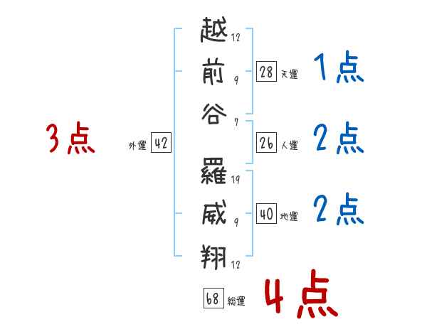 越前谷羅威翔さんの画数の鑑定結果