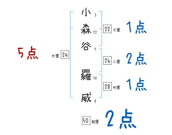 小森谷羅威さんの画数の鑑定結果