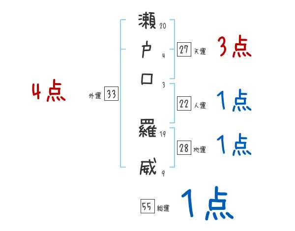 瀬戸口羅威さんの画数の鑑定結果