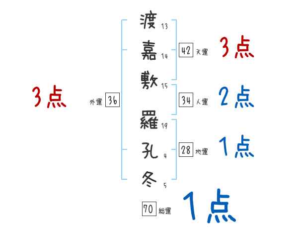 渡嘉敷羅孔冬さんの画数の鑑定結果