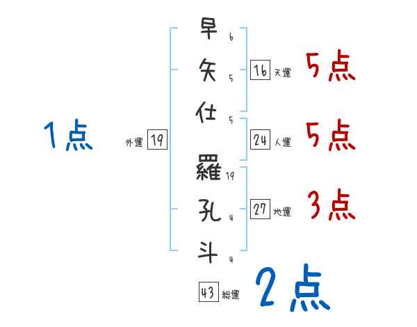 早矢仕羅孔斗さんの総運は43画の2つ星
