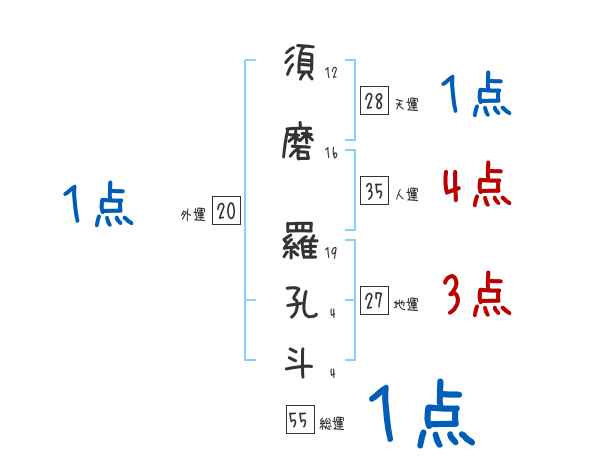 須磨羅孔斗さんの画数の鑑定結果