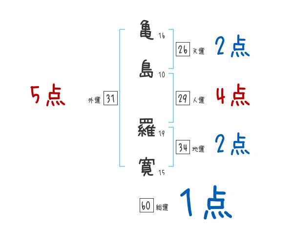 亀島羅寛さんの画数の鑑定結果