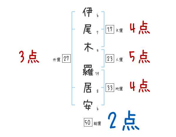 家系が持つ宿命的な運勢を表します。祖先から受け継いだ苗字ですので自分の力が及びません。家柄を象徴します。