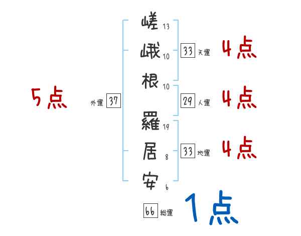 嵯峨根羅居安さんの画数の鑑定結果