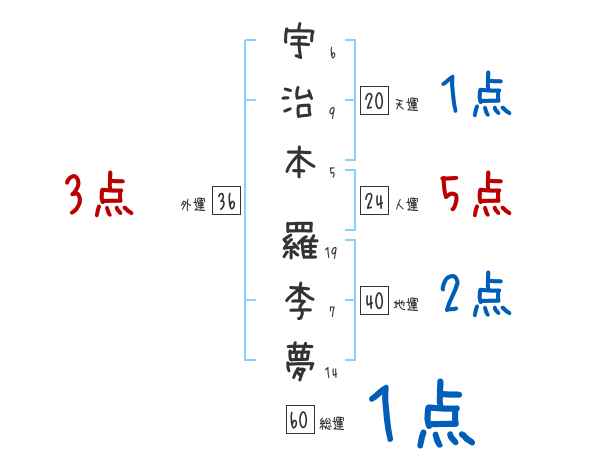宇治本羅李夢さんの画数の鑑定結果