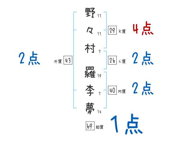 野々村羅李夢さんの画数の鑑定結果