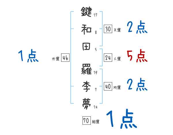 家系が持つ宿命的な運勢を表します。祖先から受け継いだ苗字ですので自分の力が及びません。家柄を象徴します。