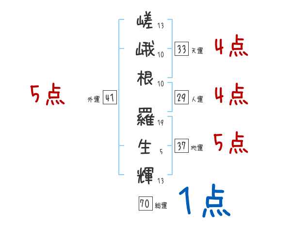 嵯峨根羅生輝さんの外運は41画の5つ星