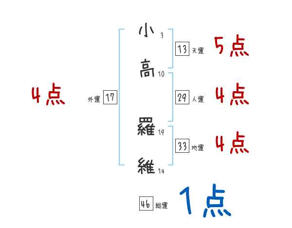 外運![]() | 小高羅維さんの外運は17画の4つ星!積極的な行動力。地位を気づき財産を手に入れる。純粋な心と直感力。 生活面を象徴する運勢です。外部から受ける影響力を表し、結婚運、家庭運や職場、環境への順応性を表します。 |