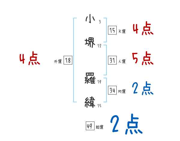 小堺羅緯さんの画数の鑑定結果