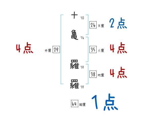 十亀羅羅さんの画数の鑑定結果