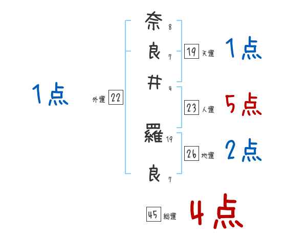 奈良井羅良さんの画数の鑑定結果