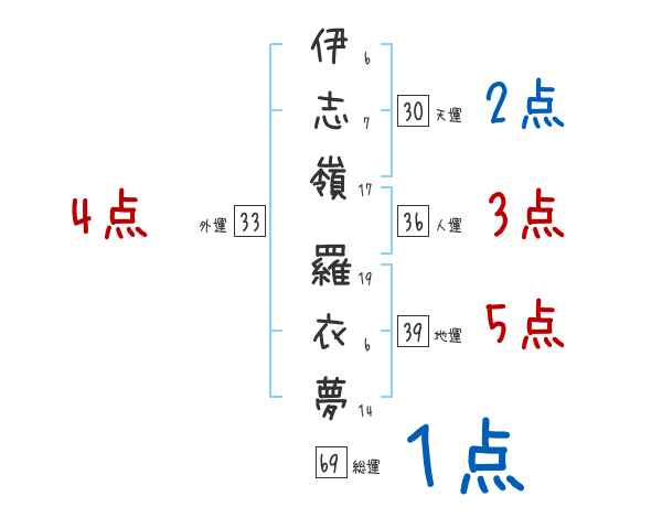 伊志嶺羅衣夢さんの画数の鑑定結果