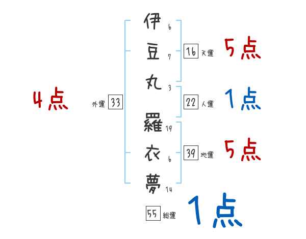 伊豆丸羅衣夢さんの画数の鑑定結果
