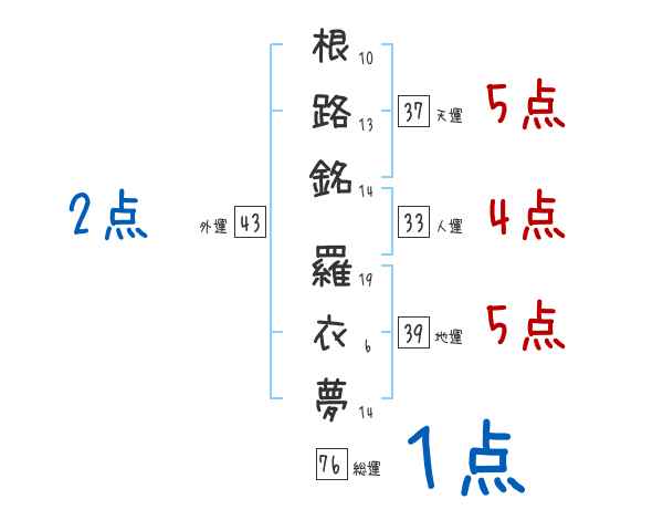 根路銘羅衣夢さんの画数の鑑定結果