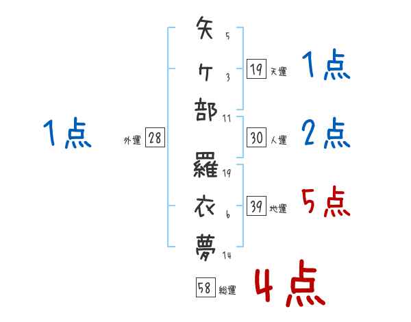 矢ヶ部羅衣夢さんの画数の鑑定結果