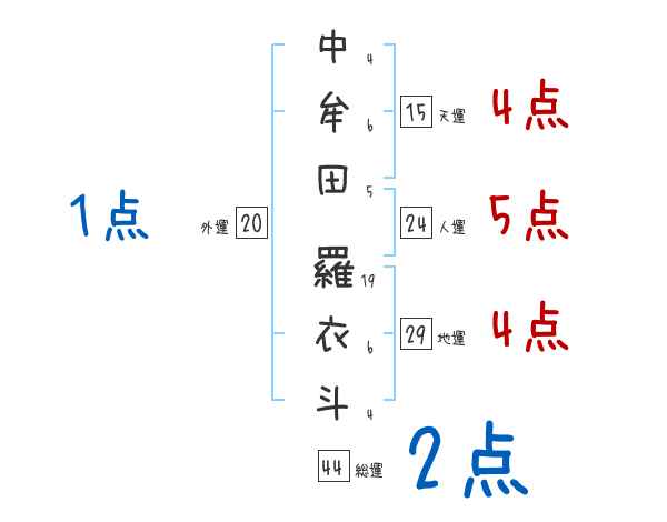 天運![]() | 中牟田羅衣斗さんの天運は15画の4つ星!人徳があり出世する。順調に物事を進め円満な人生。 家系が持つ宿命的な運勢を表します。祖先から受け継いだ苗字ですので自分の力が及びません。家柄を象徴します。 |
