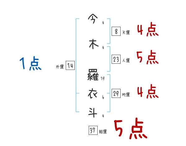 外運![]() | 今木羅衣斗さんの外運は14画の1つ星!人に対して優しいがストレスを溜め込みがち。人間関係のトラブルを避けるよう気をつけましょう。 生活面を象徴する運勢です。外部から受ける影響力を表し、結婚運、家庭運や職場、環境への順応性を表します。 |