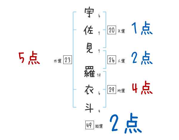 外運![]() | 宇佐見羅衣斗さんの外運は23画の5つ星!想像力に優れ活力がある。一代で成功し名誉を手に入れる。 生活面を象徴する運勢です。外部から受ける影響力を表し、結婚運、家庭運や職場、環境への順応性を表します。 |