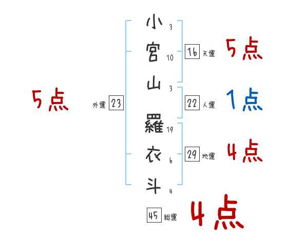 小宮山羅衣斗さんの画数の鑑定結果
