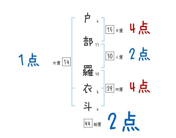 外運![]() | 戸部羅衣斗さんの外運は14画の1つ星!人に対して優しいがストレスを溜め込みがち。人間関係のトラブルを避けるよう気をつけましょう。 生活面を象徴する運勢です。外部から受ける影響力を表し、結婚運、家庭運や職場、環境への順応性を表します。 |
