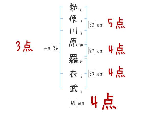 勅使川原羅衣武さんの画数の鑑定結果